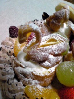 チョコレートケーキにシュークリームをポンポンと乗せて作ってもらえますか?